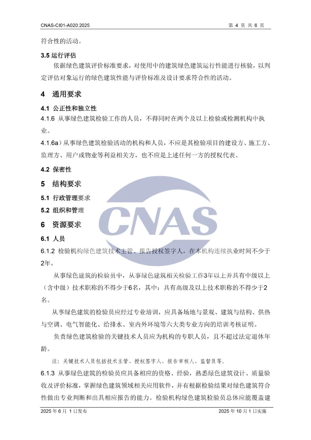 为进一步规范绿色建筑领域检验机构认可,中国合格评定国家认可委员会(CNAS)秘书处近期组织制订了CNAS-CI01-A020:2025《检验机构能力认可准则在绿色建筑检验领域的应用说明》,现已发布,将于2025年10月1日实施。